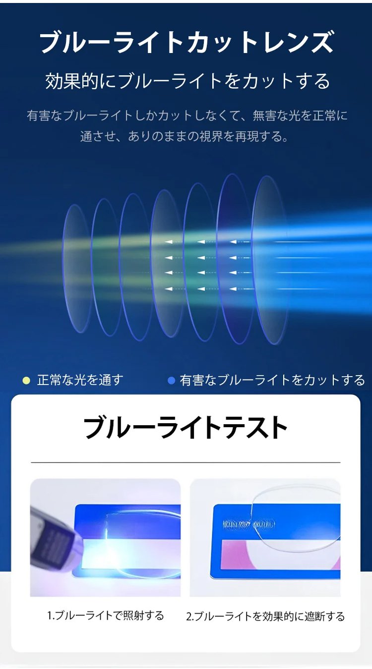 わずか7gの超軽量。ブルーライトカット+調光機能で、-4.0°~+7.0°まで自動調節、生涯買い替え不要!